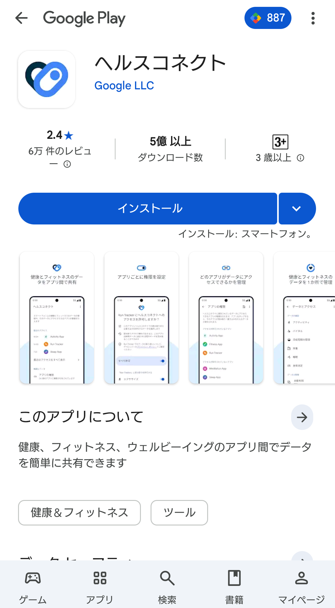 Android 13以前の端末は、「ヘルスコネクト」アプリのインストールが必要となります。